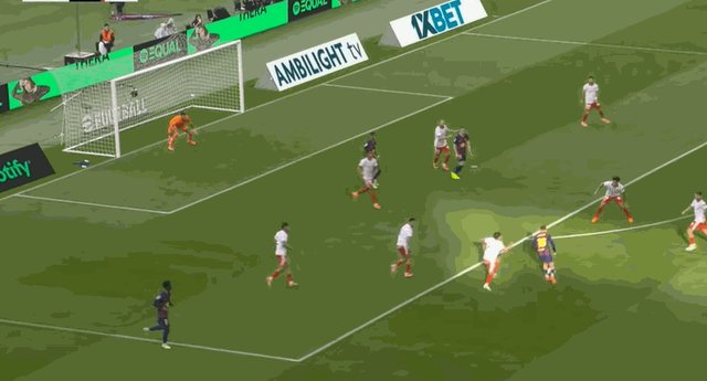 伤停补时第3分钟,弗伦基·德容传中,罗纳德·阿劳霍抢点推射远角破门。巴萨2比1完成绝杀。