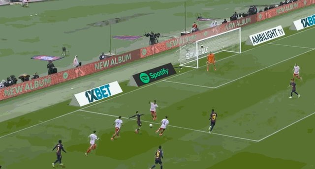 第13分钟,佩德里禁区内横向盘带后出其不意地起左脚低射,皮球击中远端立柱弹入球门。巴萨1比0先拔头筹。
